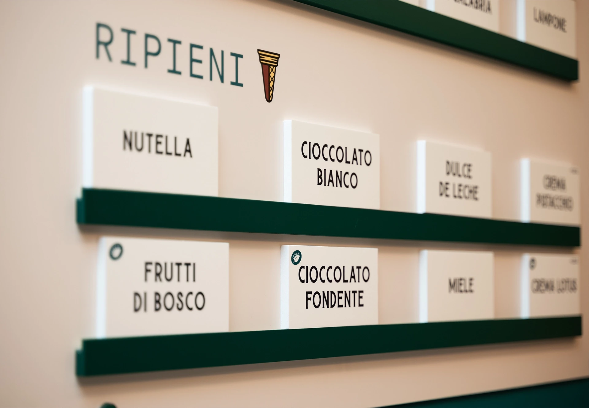 Full brand system redesign and retail experience update for a modern Italian gelateria.