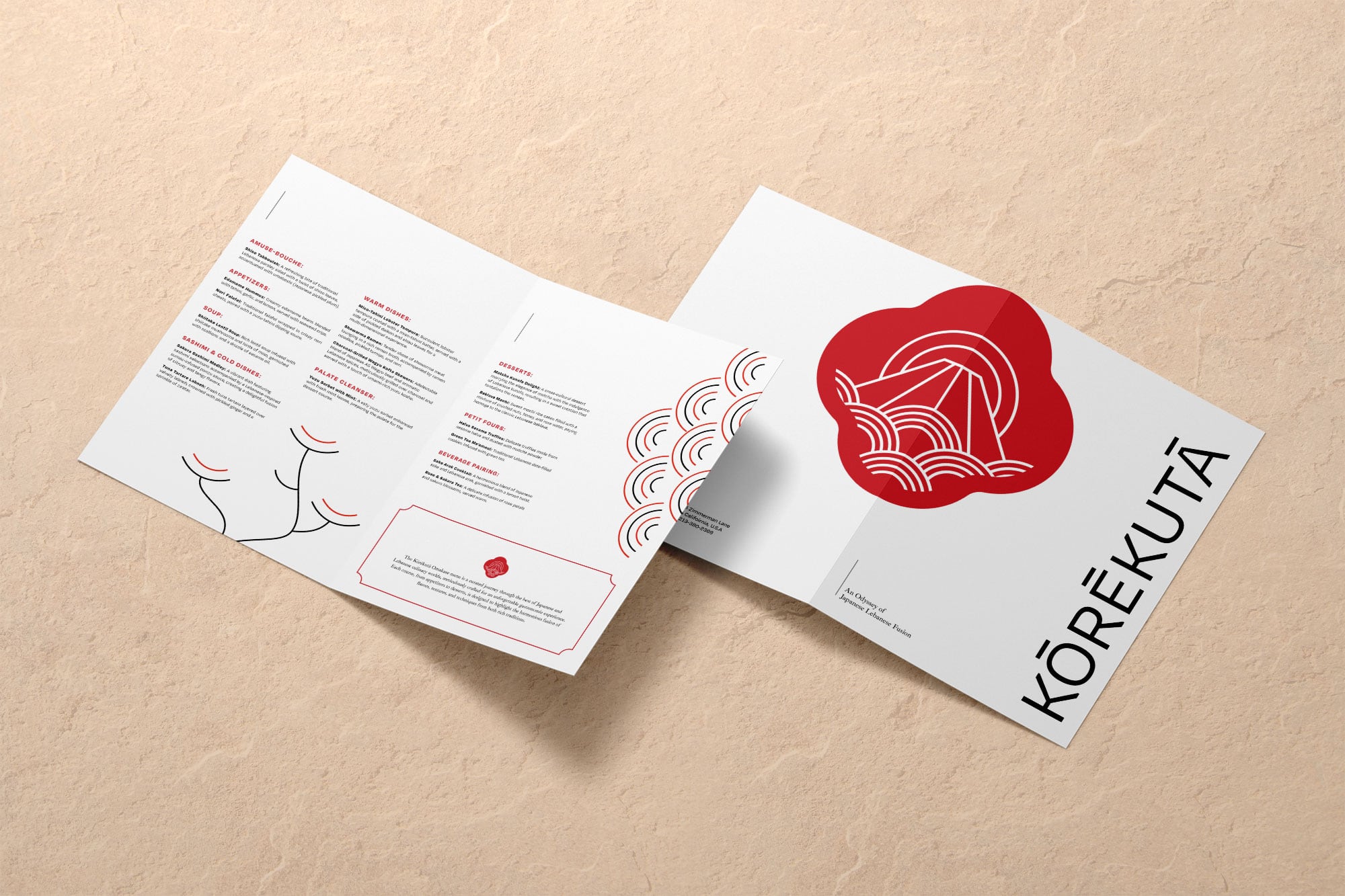 We developed a brand identity for Kōrēkutā, a fusion restaurant blending Japanese and Lebanese flavors, covering visual design, interior renderings, and menu curation.